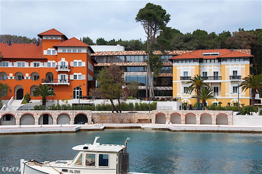 Boutique hotel AlhambraSodobna arhitektura je na Čikatu, v najlepšem lošinjskem zalivu, povezala stari avstroogrski vili iz leta 1912, Alhambro (rdeča) in Augusto, v prestižni hotel z le 50 sobami in (vsaj) toliko zaposlenimi. Član svetovne verige Small Luxury Hotels. Eleganca in luksuz, privatna plaža, spa oaza, notranji bazen z morsko vodo, 24-urni room.service, vinoteka, vrhunska restavracija.