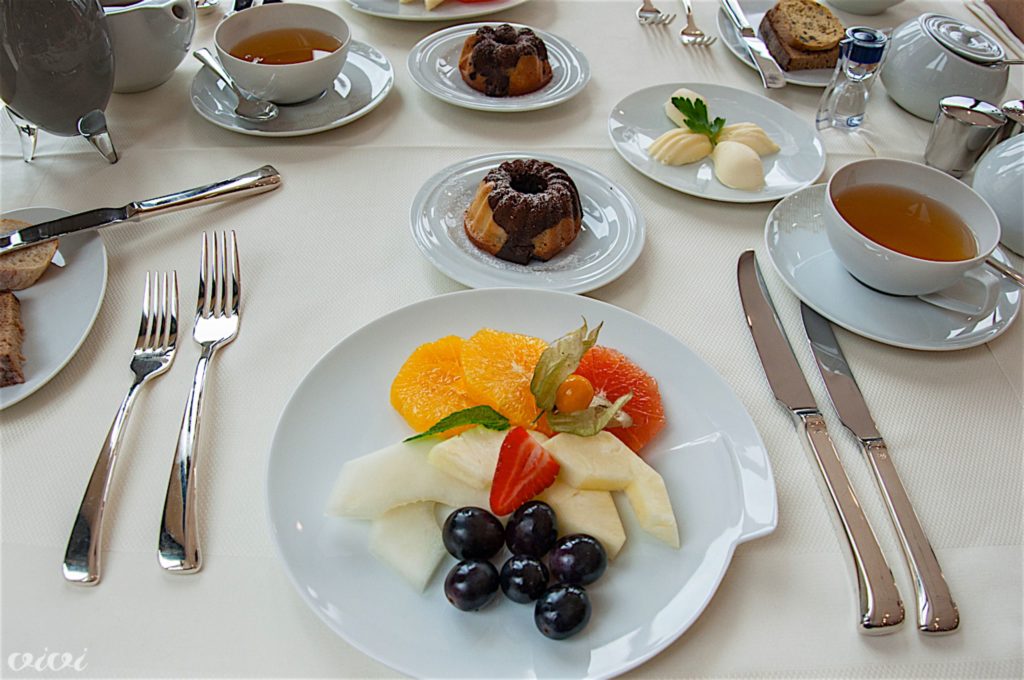 Že ”hotelski” zajtrk v Alhambri je nekaj posebnega. Za amuse bouche prinese ”Dober dan, moje ime je Radovan in danes vas bom jaz stregel,” chefov še topel miniaturni marmorni kolač in ponudi jedilni list. Ne vstajajte, prosim, mi vam bomo prinesli, le povejte, kaj želite, jajca Benedict, s panceto ali lososom, ali Florentine, z mlado špinačo?