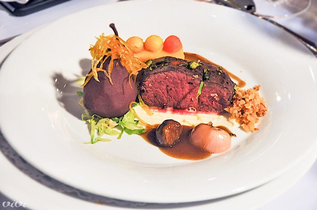 Jelen in polentaGostitelj, Primusov chef Robert Žibrat, je z glavno jedjo izzval z drugačnostjo. In enako je s svojim vinom naredil tudi Borut Prapotnik. Dominus R, 2012, iz modrega pinota in shiraza, ima karakter, ki ga lahko nekdo oceni tudi kot težavnega …, toda prav drugačnost je njegova odlika. Upajmo, da ne bodo vsega prehitro spili, saj bo njegovo zorenje še veliko povedalo.