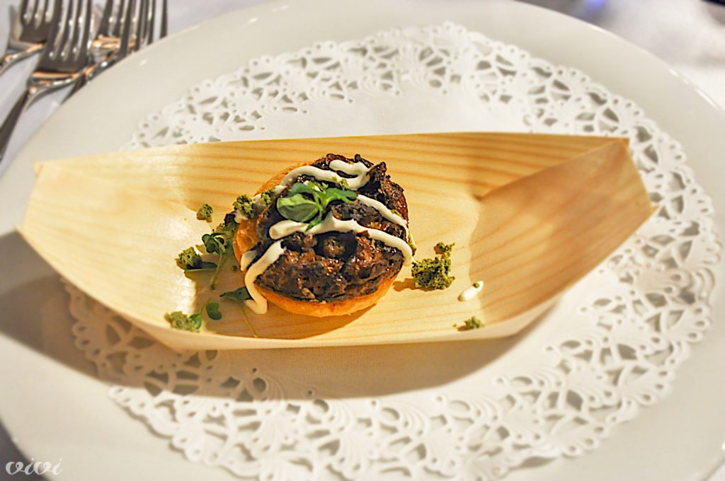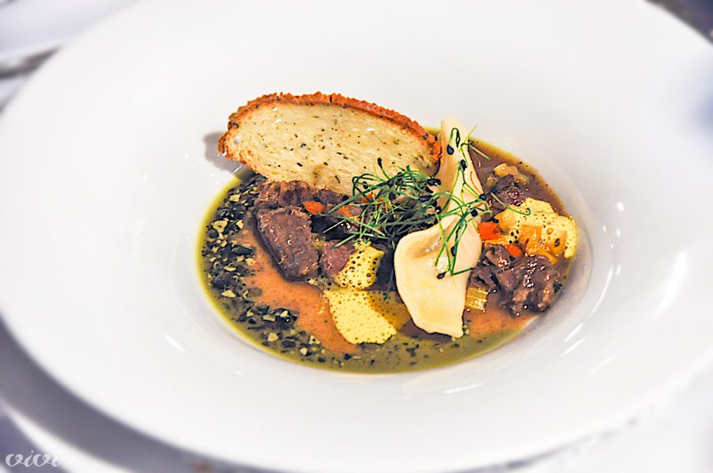 Rep in bučaKompleksna jed, ragu govejega repa, je ob druženju z bučo predstavila raznolikost tekstur, hrustek, krema, pena, omaka, raviol. Mladi kuharji – Dejan Žnidarič, Gostilna pri ovinku) – dobro obvladajo sodobne tehnike. Z repom se je dobro ujel sauvignon, 2015, polsuh. Borut Prapotnik: ”Z vonjem po zmečkanih paradižnikovih listih. To se pri sauvignonu zelo redko zgodi.”