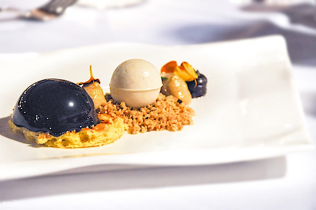 Topinambur, čokolada in orehNajmlajši je pokazal največji talent! Tadej Meško, 21 let, še eden iz skupine mladih kuharjev, ki pri Davidu Vračku spoznavajo kuharske trike in skrivnosti, je dokazal, da sladico, če je uravnotežena z okusi in minimalistična z oblinami, potrebuje vsak meni, tudi takšen jesensko-štajerski, ki ni varčeval z mesom in kalorijami. Sladoled iz topinamburja, v obliki in teksturi praline, je bil suh, torej ne-sladek, čokolada je bila majhen zvon pene, ki se je svetila, orehi niso hrustali, ker so se topili in dejansko aromatično dirigirali celotnemu krožniku, ob katerem je imel še največ sladkorja rumeni muškat, izbor, 2015. Ravno zatio … Borut Prapotnik (Pra-vino): to je bil izjemen letnik, saj je bilo grozdje zdravo še v pozno jesen. Sicer se zelo redko zgodi, da gre lahko rumeni muškat v predikat in da ima toliko sladkorja.”