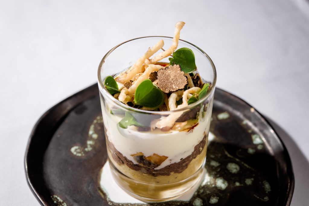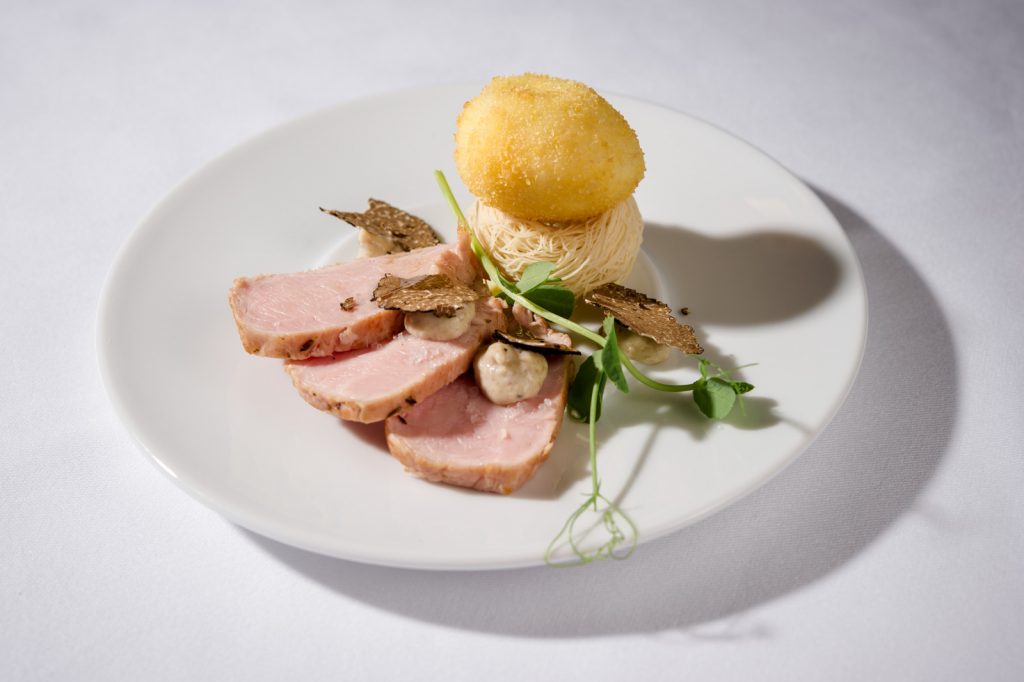 KEMPINSKI PALACE PORTOROŽ, Chef Daniel Pause: telečji hrbet, hrustljavo prepeličje jajce, kataifi gnezdo, črni tartufi, tartufova penica