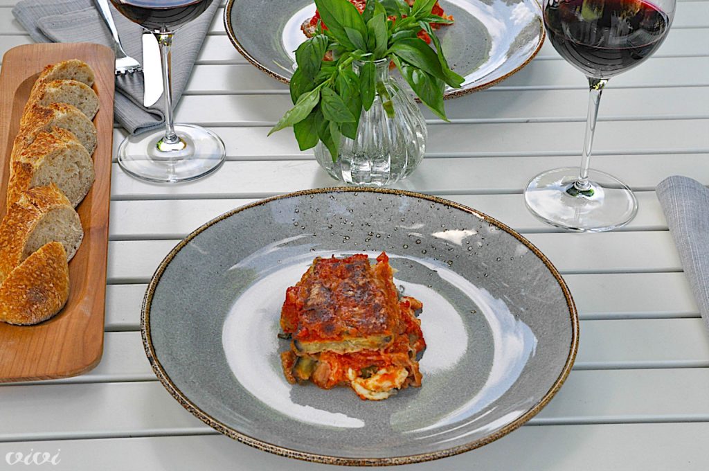 PrilogaParmigiana potrebuje le kos svežega kruha in kozarec rdečega vina.