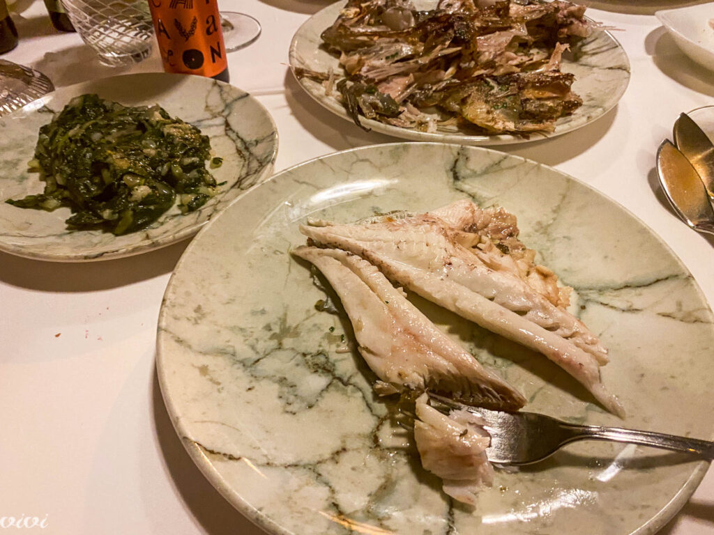 Kuhinja pozdravi z ocvrtim kvarnerskim barbonom, ki pa ima pestro spremljavo: pesto sušenih paradižnikov, črni aioli, espumo paške ovčje skute in jajčevca, hrustek iz sipinega črnila in oljčno olje iz Vodnjana, aromatizirano z meto in baziliko. Komur je vse to premalo, si še popopra, na voljo je črni Sarawak z Bornea. Zraven ima Šemberjeva penina letnico, 97, ki pa pomeni, kdaj so v Jastrebarskem posadili trte zanjo.