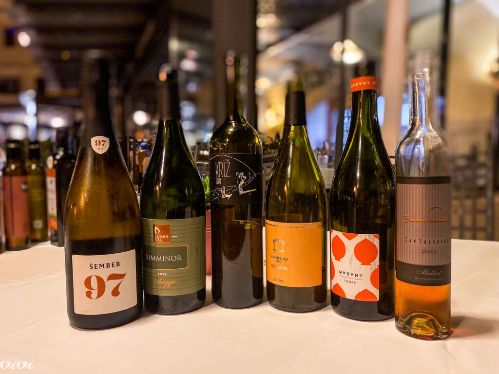 Aperitiv: penina Šember 97 (številka pomeni letnico, ko je so bile trte posajene; 70 % chardonnay, 30 % pa iz ostalih starih vinogradov, kjer imajo posajene mešane sorte).