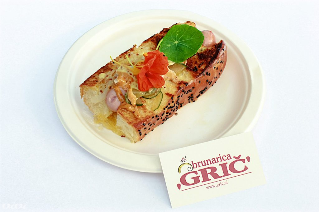 Hot dogLuka Košir (Gostišče Grič, Horjul): “Vroči pés”, hot dog po chefovsko.