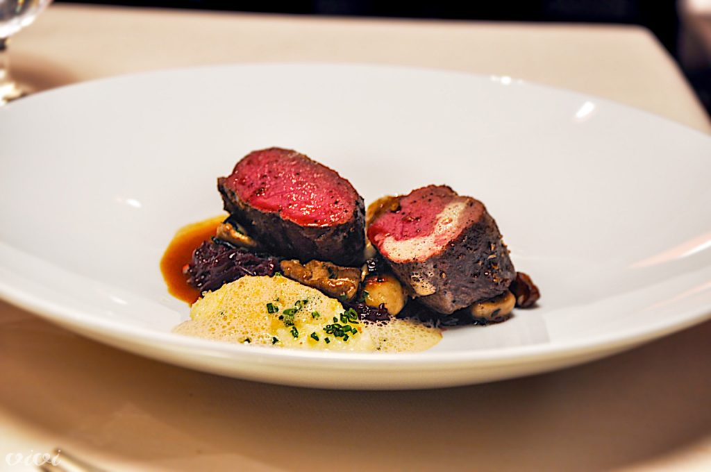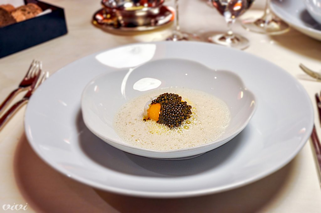 MignonetteStopnjo višje, celo zelo haute, kot se je chef, Avstrijec s Tirolskega, učil v Alzaciji pri Haeberlinu, je ”juha”, ki pa je, seveda, omaka mignonette, le da šalotke in vino ne spremljajo ostrig, temveč majhne sipe, polnjene z rumenjakom in kaviarjem. Tantris ima ”le” dve mišelinki, a zato že tako dolgo, kot nobena druga restavracija v Nemčiji.