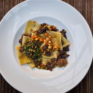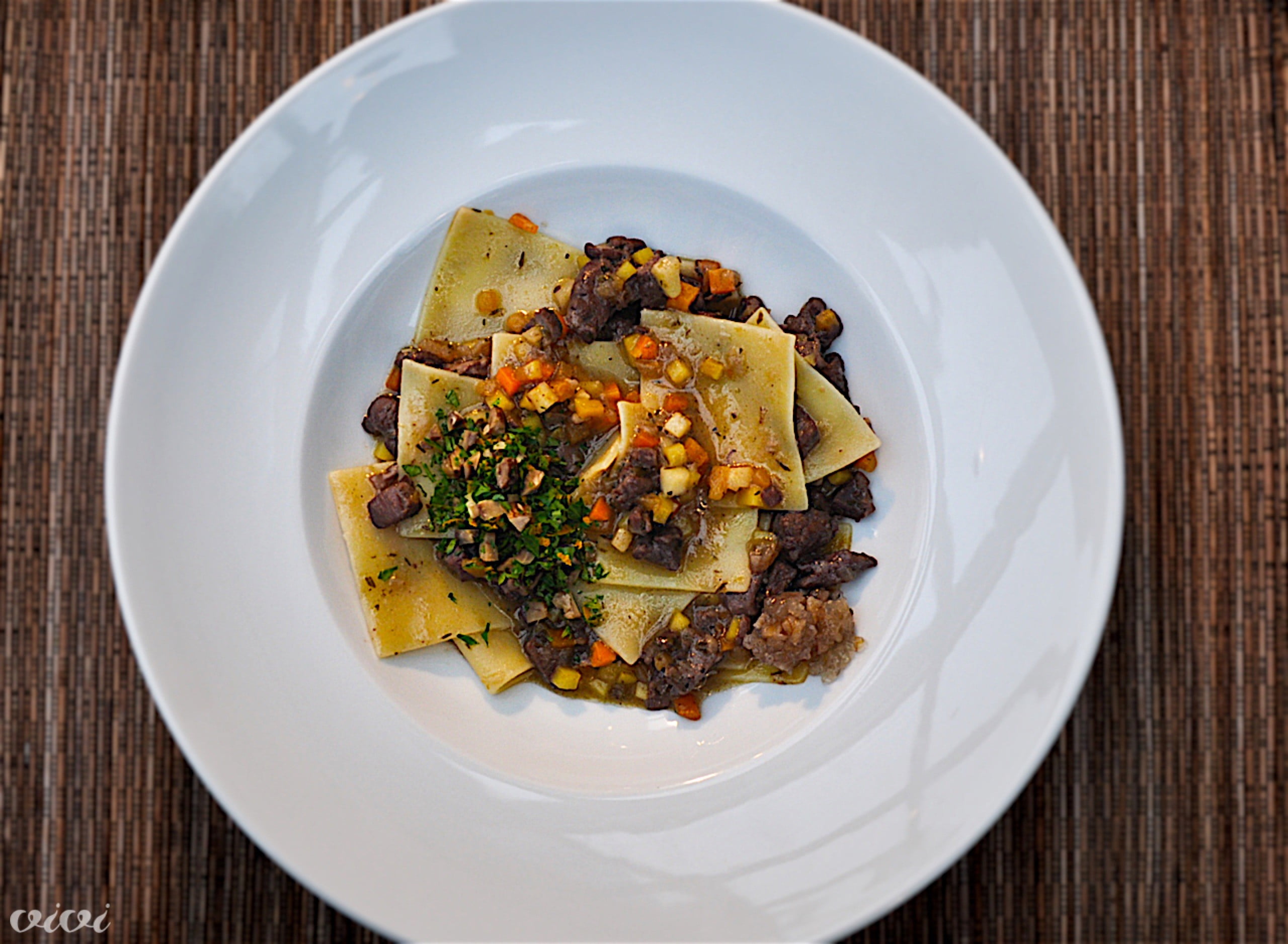 Divjačinski ragu in kostanjeva gremolata