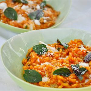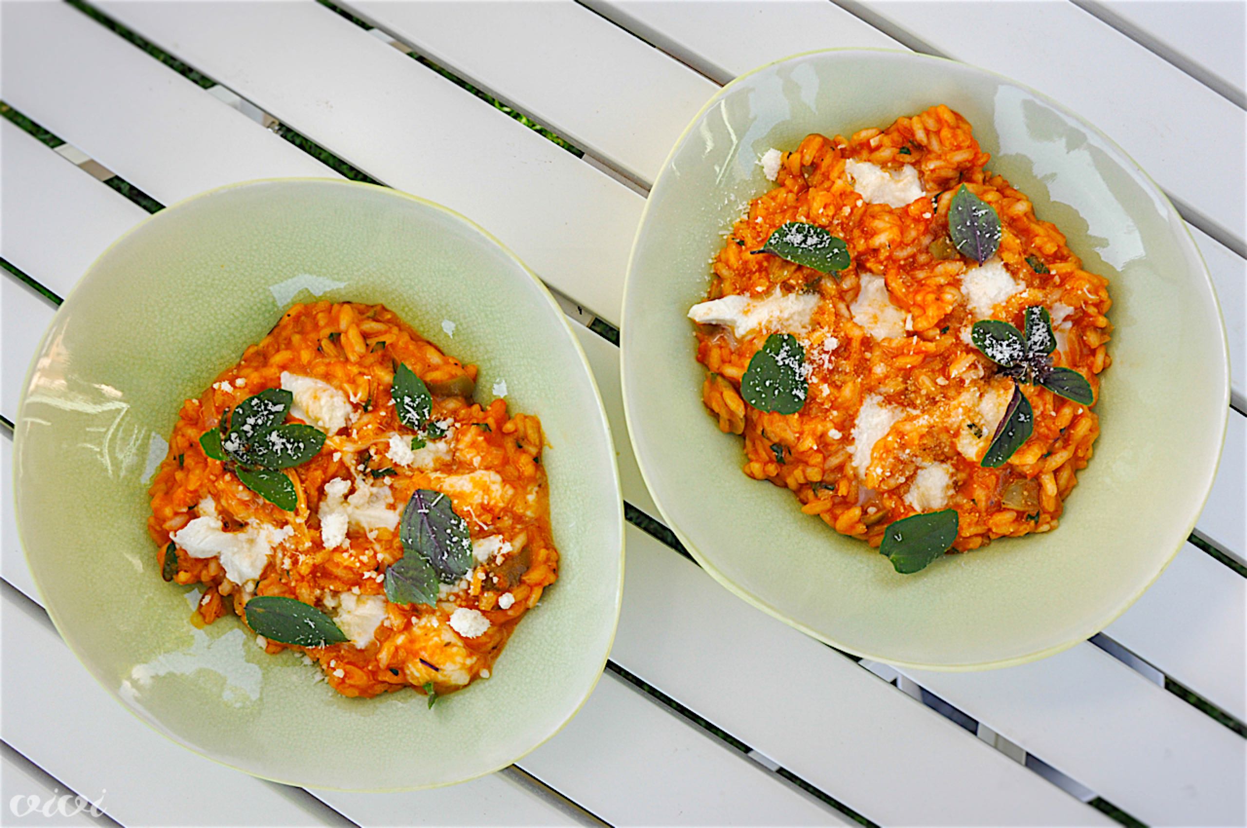 Paradižnikova rižota z olivami in mocarelo
