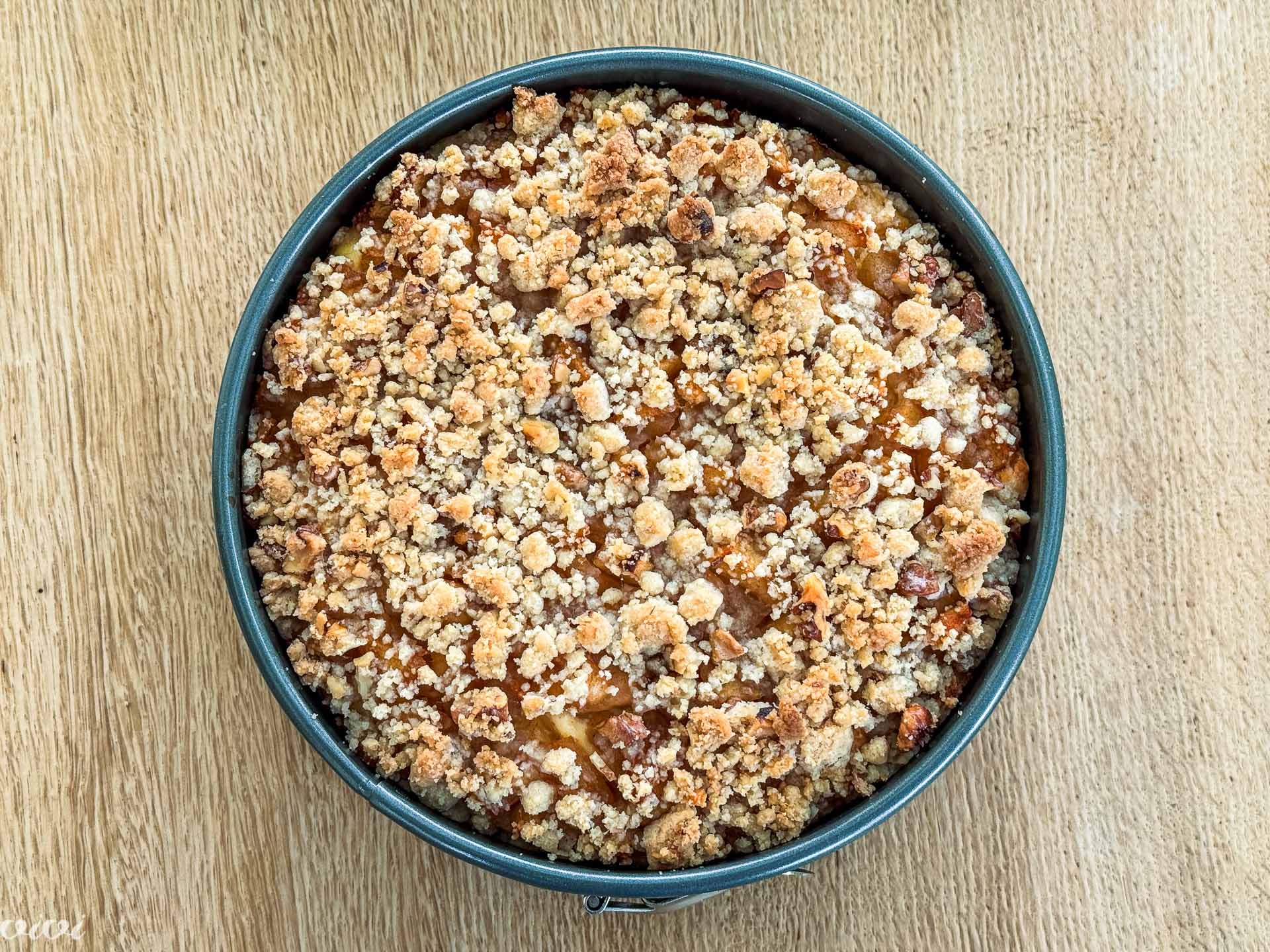 V tem receptu je združeno najboljše obeh ”svetov”: kar so znale že naše babice – jabolčna pita z orehi – in kar imamo radi danes – drobljivost in hrustljavost dna in vrha ter sočnost in opitost nadeva.