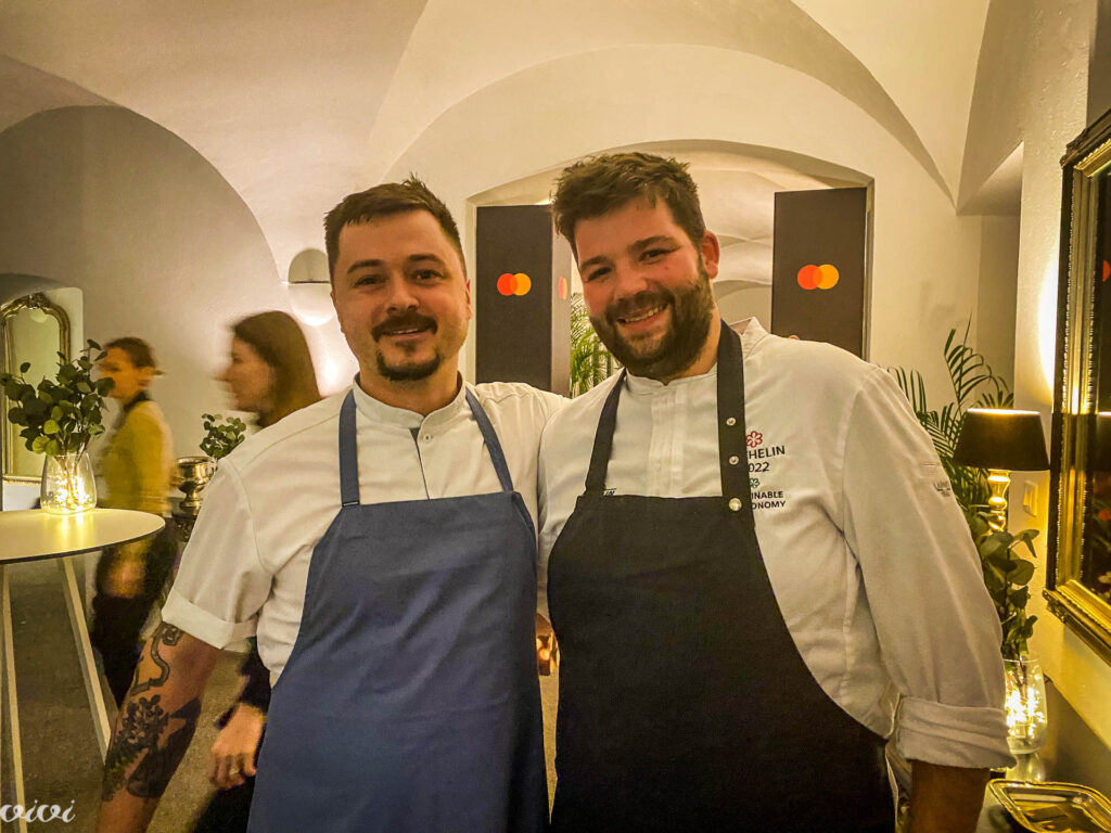 Radiatorji v jedilnici so bili sicer hladni, a zato sta nastopila trenutno najbolj vroča slovenska chefa, Gričev Luka Košir in Milkin David Žefran. Mastercard pop-up restavracija v Antiq Palace hotelu se je tako odlično začela z ”dvobojem” mladih, kreativnih mišelinskih chefov in njunih ekip – zelo dober strežni servis in vrhunska vinska spremljava! -, ki se je tudi po desetih hodih in petit fours podaljških končala neodločeno. V pop-upu v Antiq Palace bodo do 17. decembra nastopili še Ana Roš (pet večerov), Tomaž Kavčič, Jorg Zupan in Jakob Pintar.