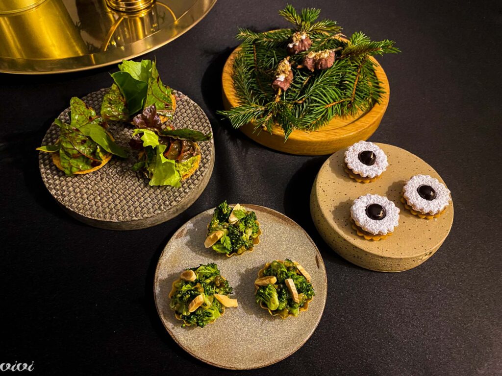 tartelet z ožganim brokolijem, kremo tolminca in slovenskimi mandlji (Milka).